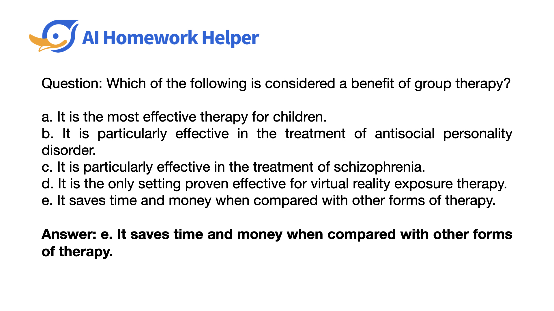 e. It saves time and money when compared with other forms of therapy.